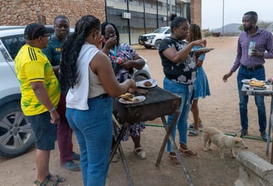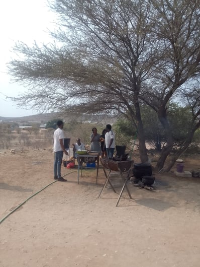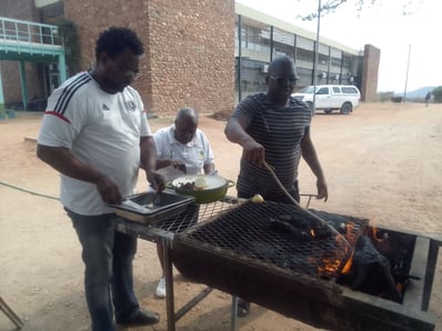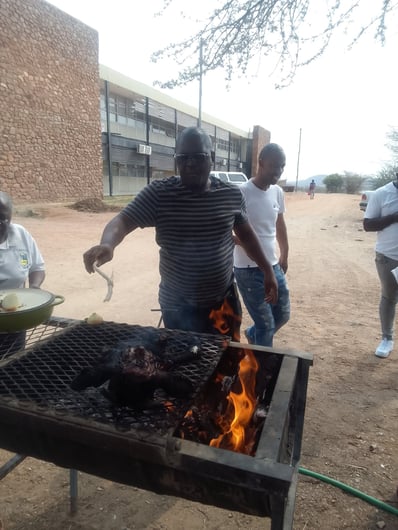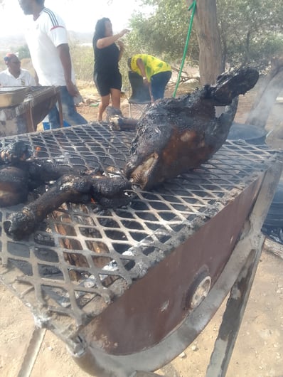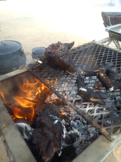 The braii was outstanding! A freshly slaughtered goat for the occasion, some pre-seasoned beef and chicken from the local meat shop and, of course, some Boerewors sausages.